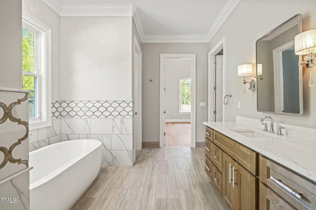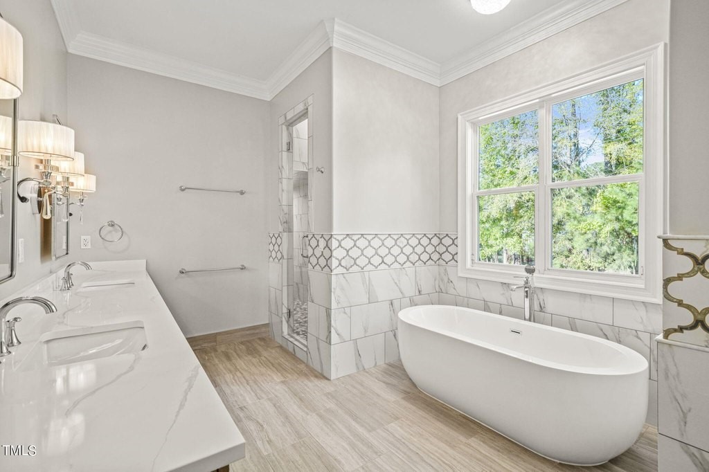 S & A Construction proudly presents a residential masterpiece, epitomizing attention to detail through opulent finishes found throughout the home. Set within a secluded .68 acre lot, this exquisite property harmonizes tranquility with convenience, providing swift access to Duke University and Medical Center, Downtown Durham, Hillsborough, and UNC University and Hospital. The home's layout is designed to create a seamless transition between the kitchen and family room, accentuated by a comforting fireplace and bespoke built-ins. Adding to its appeal is a distinctive library/office, also with a fireplace and custom built-ins, exuding a welcoming atmosphere. The kitchen is a haven for culinary enthusiasts, featuring top-of-the-line appliances, striking granite countertops, a functional island, and a spacious walk-in pantry. The property also includes a separate laundry room with a substantial sink, a custom mudroom with ample storage right off the garage, a bright breakfast nook, and a commodious three-car garage. The elegant dining room benefits from an adjoining butler's pantry. The main level primary bedroom provides easy access to the covered porch and has two large walk-in closets. The lavish master bath showcases dual vanities, an oversized soaking tub, and a walk-in shower that doubles as a steam room. The second level houses three generously sized bedrooms, each boasting an en suite bath, elegantly divided by a central loft/rec room. Furthermore, the floor holds a media room and a bonus room, offering additional living spaces. The picturesque exterior combines stone and fiber cement elements, featuring a spacious covered porch and a vast level fenced backyard perfect for outdoor activities. Given its excellent school options and its proximity to the Eno State Park entrance and Umstead Pines Golf Course, this property is a remarkable find. A comprehensive feature sheet is available in the documents. In conclusion, with Duke University, Downtown Durham, DPAC, and top-rated local restaurants within a short drive, this property truly delivers the best of both worlds.